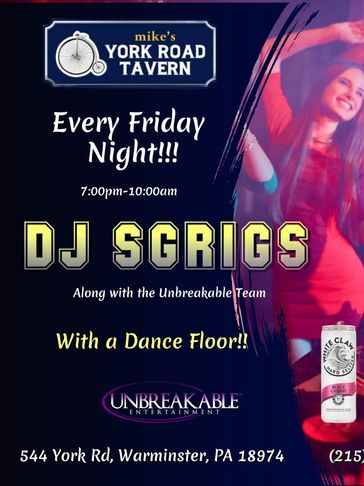 Mike's York Road Tavern will be having DJ SGRIGS every Friday Night starting at 7pm.