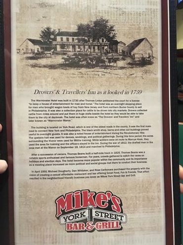 Mike said “ 544 York Road has a special history in Bucks County! It means a lot to the community and to the Warminster Township. The Original Mike had a lot of success operating Mike’s Bar and Grill. We are looking to bring the lunch & dinner crowds back, especially for families that want to have a good meal in a comfortable environment. Banquet room and even brunch options right now in our area for special occasions are somewhat limited. We hope to be a great option. We are bringing back several of the original Mike’s staff and our team is excited!